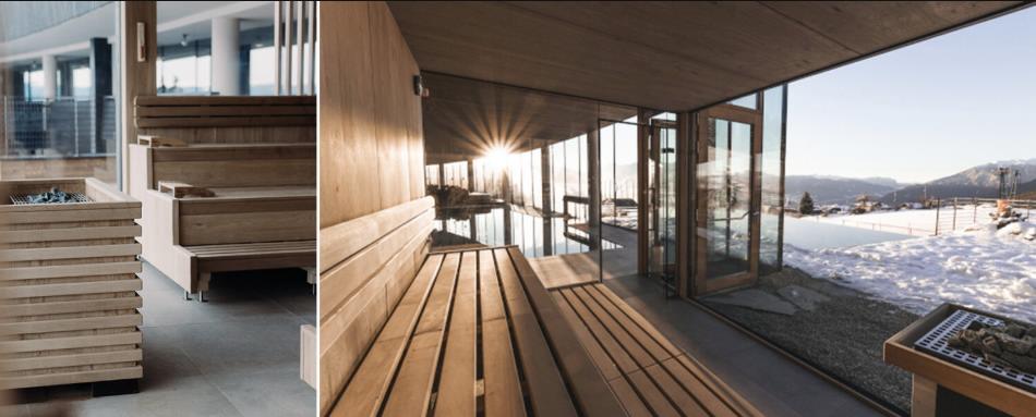 Зона спа и большая часть ванных комнат облицованы плиткой Deco из коллекции DOT марки Fioranese, которая имитирует бетон.