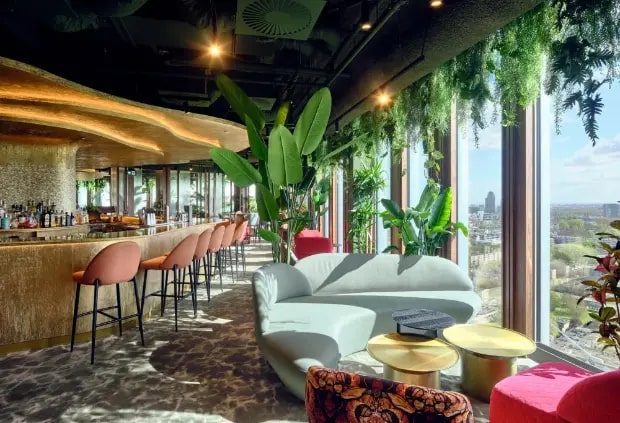 На двадцать пятом этаже отеля находится латиноамериканский ресторан «Selva» с тропическими акцентами. El Equipo Creativo столкнулись со строгим промышленным зданием с огромными окнами от пола до потолка, спроектированным в архитектурном бюро OMA. Отсюда открываются виды на окраину города, со множеством автострад и новостроек.