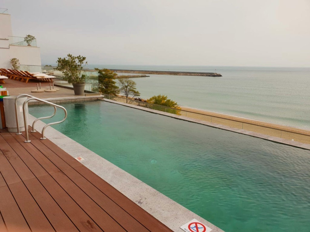 (на фото безграничный бассейн, облицованный внутри плиткой Gres Aragón)