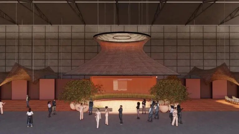 «Отель «Habitat 2025» будет сконструирован вокруг большого центрального холла, в котором главную роль сыграет внушительный шатер, изготовленный из местных материалов, где будет расставлена уличная мебель и аксессуары. Слева будут располагаться «Лобби-бар» и зона отдыха, за ними — «Аудитория», конференц-зона выставки Habitat, где пройдут несколько запланированных технических семинаров по дизайну, архитектуре, оформлению интерьеров и контрактной деятельности.