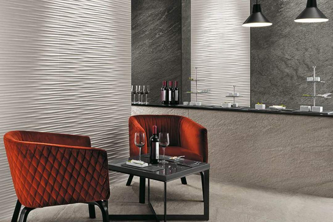 Рельефы, призванные удивлять и впечатлять, предстают в самых разнообразных интерпретациях. Например, в серии 3D Wall они обыграны в виде волнообразных мотивов, абстрактных композиций и геометрических узоров. Плитка моноколор при всем своем аскетизме в интерьере становится главным акцентом. Данная линейка богата на формы, которые при определенном аспекте дарят необычайно красивые, а порой и экстравагантные композиции.