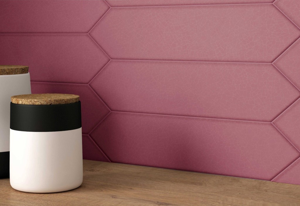 (на фото плитка из белой глины Navona оттенка Viva Magenta формата 7,5x30 см)