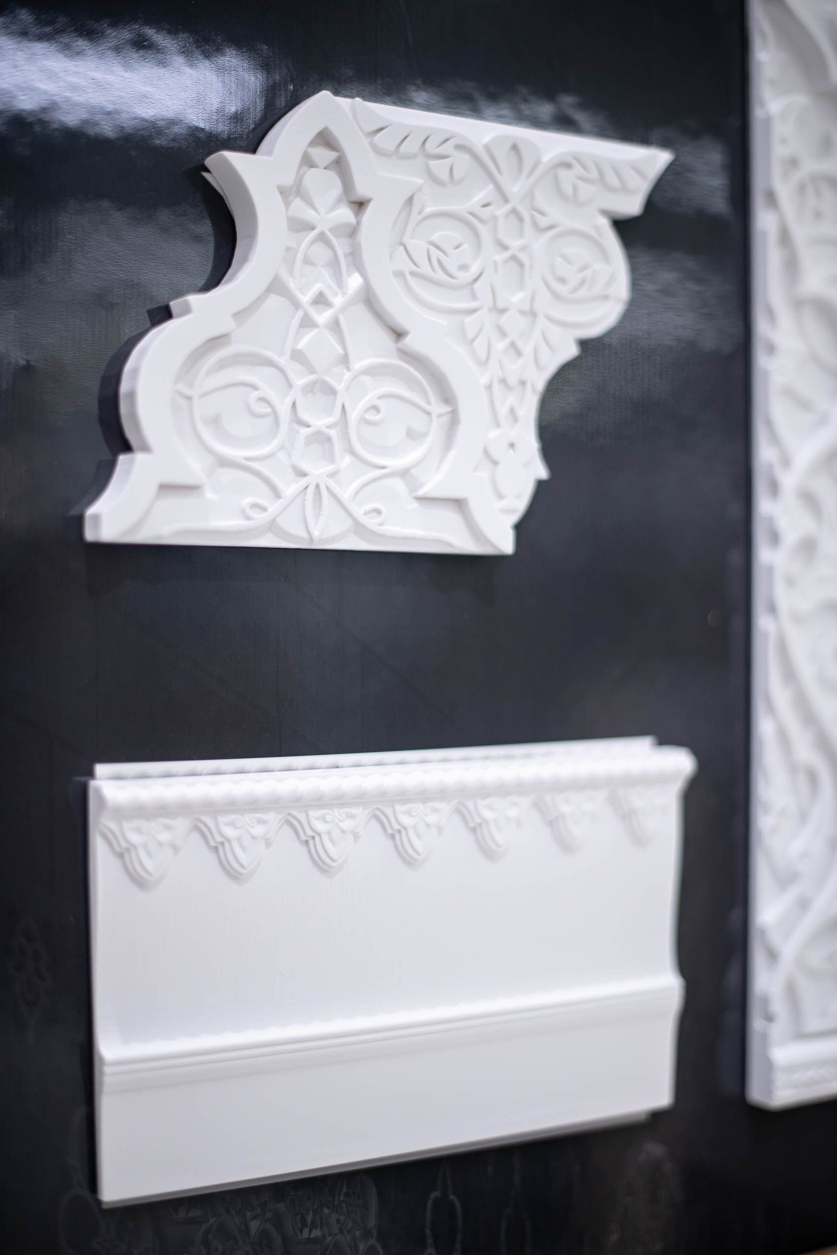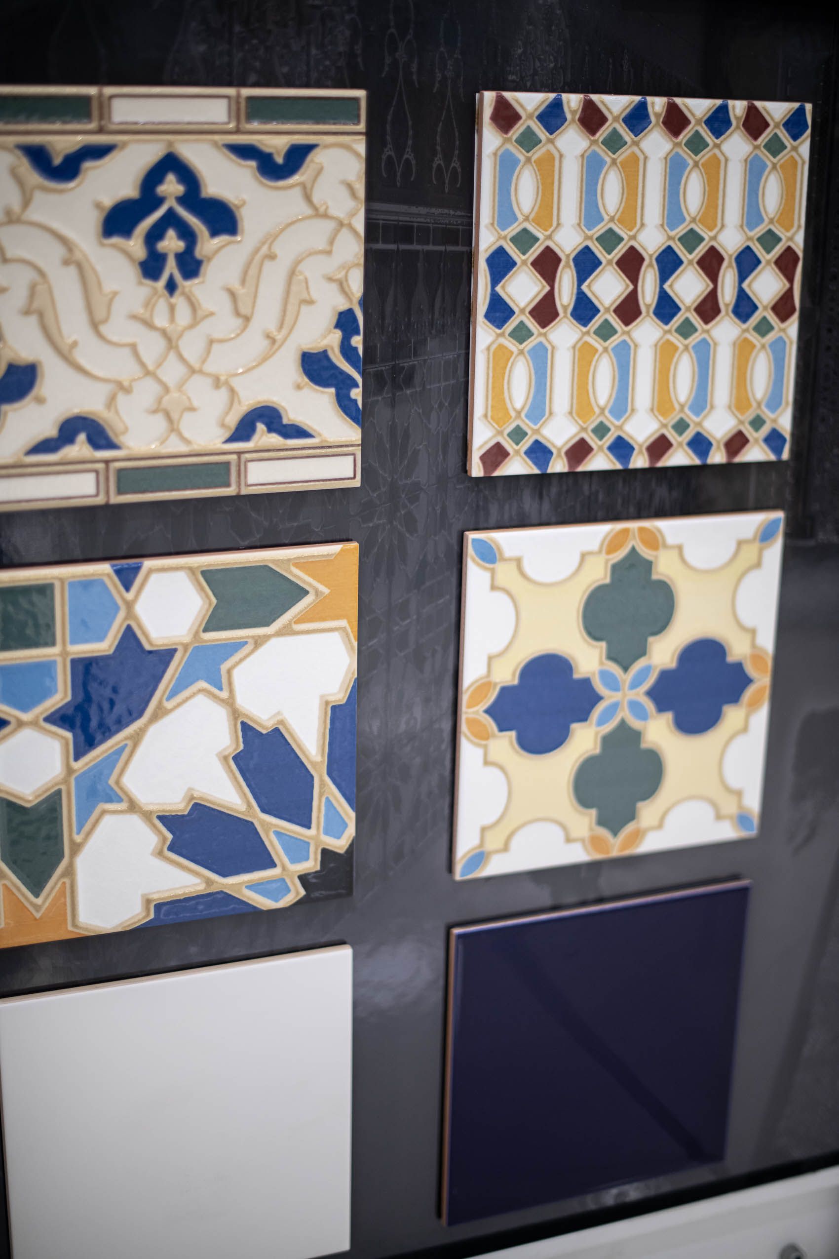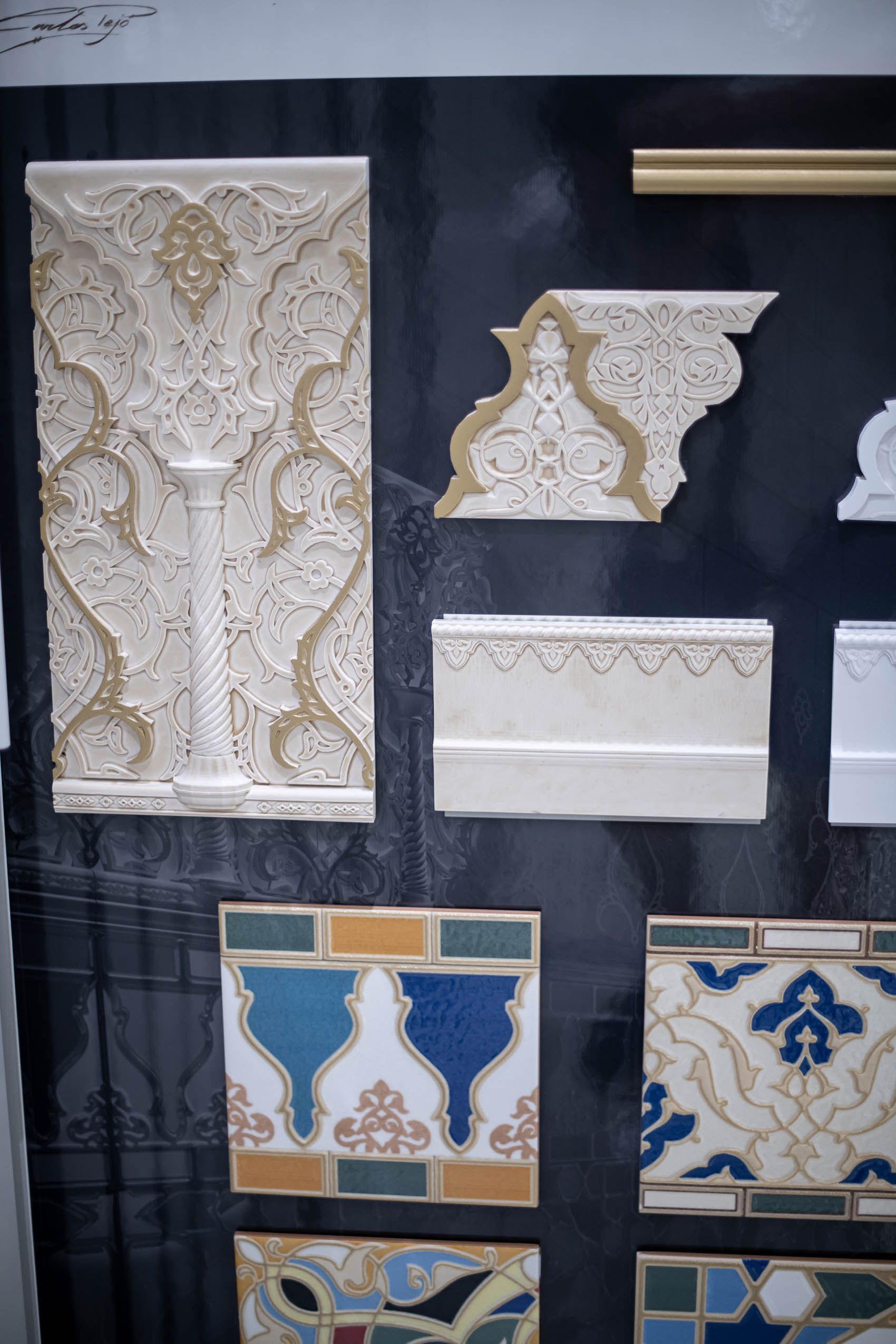 Для производства этих декоров использовался прессованный мрамор, позволивший добиться идеального сходства с оригинальными прототипами. Остальная часть коллекции Al-Andalus не менее впечатляющая и заслуживающая всяческого внимания. Плитка Lacería Celmira, Alicatado Zahira, Alicatado Altair, Alicatado Shaina, Cenefa Kardelen и Cenefa Rada – это богатейшая палитра красок и причудливых узоров. Роскоши добавляют имитации серебра и золота, облаченные в изящную окантовку на поверхности керамики, а также широкие (12х20) и изящные (2,5х20) бордюры Al-Andalus.