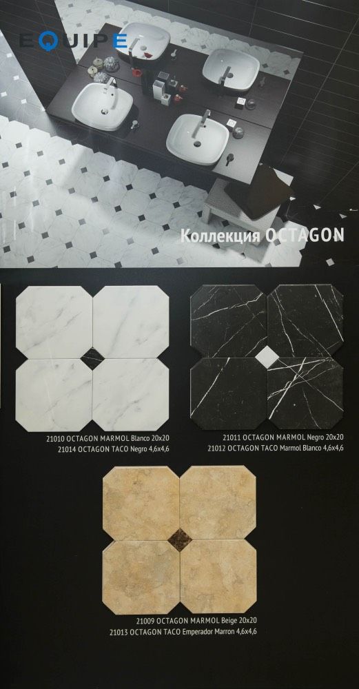 Керамогранитная плитка OCTAGON с матовой поверхностью для интерьеров любого типа. Коллекция фабрики Equipe Ceramicas выполнена в спокойных тонах, в форме восьмиугольника. Испанская плитка 20х20 укладывается вместе со вставками 4,6х4,6 разнообразного цвета и дизайна, что позволяет получить невероятно красивое и оригинальное оформление. Цветовую палитру базового керамогранита Equipe Ceramicas OCTAGON составили белый, серый, черный и бежевый. Однотонные образцы дополнены аналогами, имитирующими природный мрамор, которые можно выкладывать в виде эффектных панно. Купить плитку OCTAGON предлагаем для качественной отделки ванных комнат, прихожих, кухонных и жилых помещений.