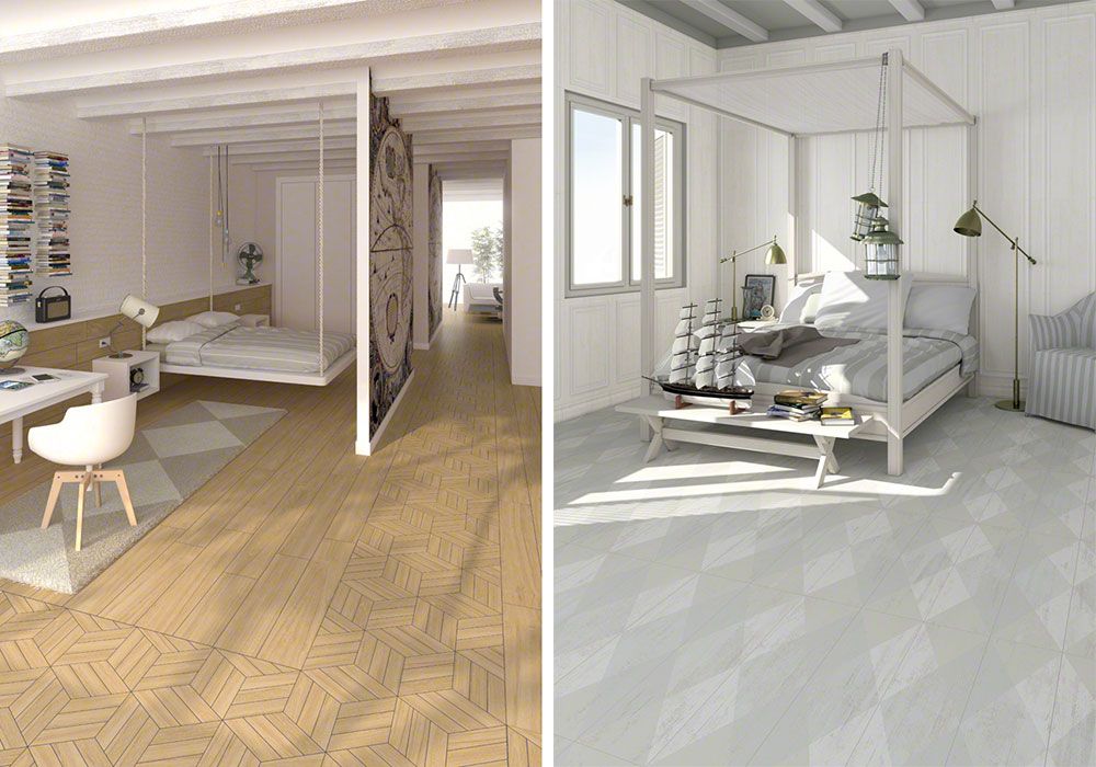В решении такой задачи очень помогают светлые оттенки: белые и кремовые для напольной и настенной плитки, а также мебели и аксессуаров. Если вы хотите создать пространства, наполненные теплотой и спокойствием, отличным вариантом станут поверхности «под дерево», например, керамические модели серии World Woods, Orsa или Efeso от компании Vives. Вы можете выбрать плитку более урбанистического или индустриального дизайна — поверхность серий Makran или Rift, стилизованная под цемент, поможет создать авангардную атмосферу. Если же вы хотите придать пространству объема, то главным, привлекающим внимание элементом может стать настенная плитка серий Chamarel или Elvida.