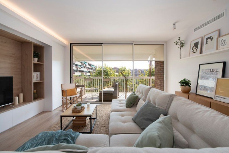 Благодаря отказу от визуальных барьеров квартира выглядит очень просторной, она хорошо освещается естественным светом и визуально связана с террасой.