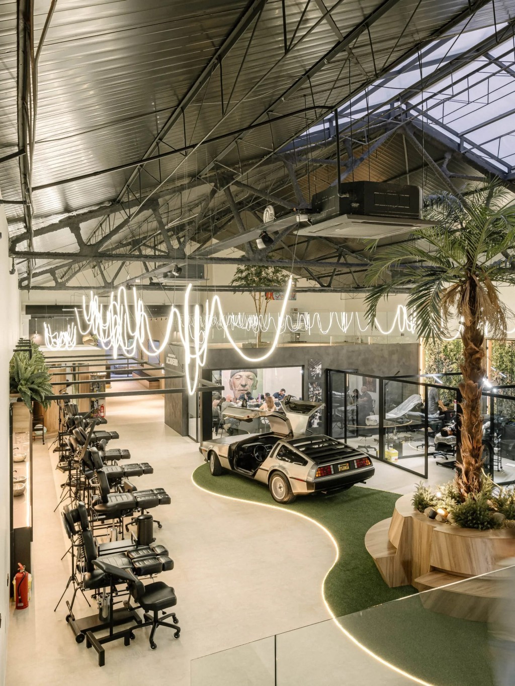 Такие своеобразные элементы, как полукруглая лавка с растительной композицией, или символичный спортивный автомобиль DeLorean – все делает пространство действительно уникальным. Дизайн, призванный вдохновлять, привлекает не только обычных людей, но и известных во всем мире художников.