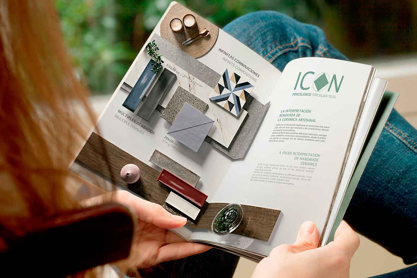 Центральное место в каталоге занимает представление серий и "доски настроения", демонстрирующие, как модели Icon сочетаются с другими продуктами марки Grespania в эстетике камня, цемента, дерева, чтобы помочь потребителю определиться с концепцией дизайна.