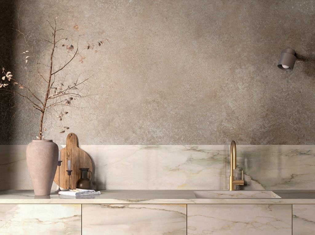 Коллекция RealstoneTravertino объединяет две вариации натурального камня – Vein и Cross, каждая из которых идеально воспроизводит присущие ему нюансы. Обе серии ассоциируются с теплой палитрой юга Италии, где буквально все пропитано историей, а сочетание природных пейзажей и классической архитектуры способны передать подлинные впечатления от неувядающей красоты этого региона.
