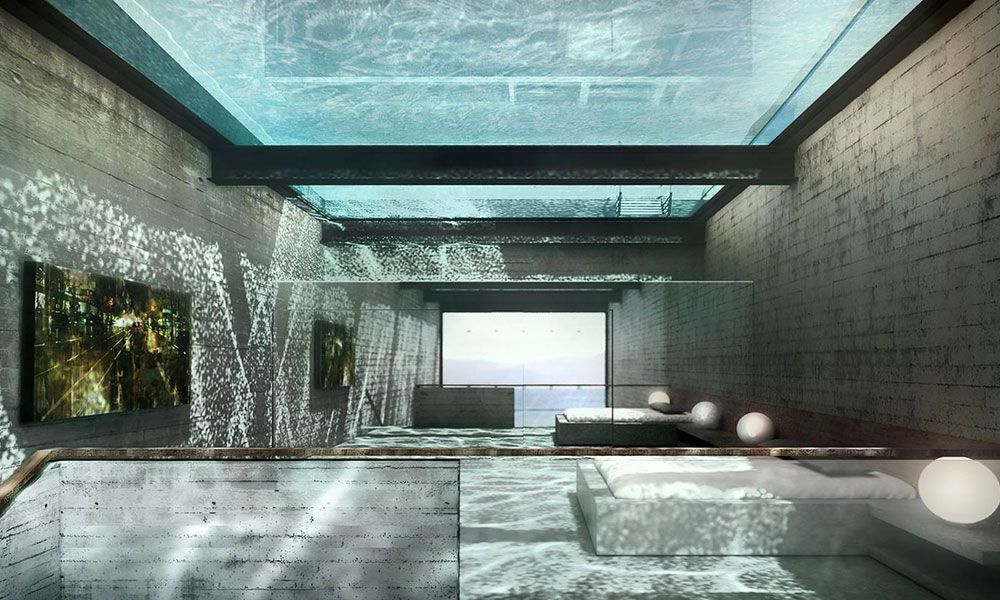 А греческие архитекторы Laertis Antonios Ando Vassiliou и Pantelis Kampouropoulos придумали еще более нестандартный вариант. Они разработали проект жилища, не просто встроенного в скалу, но и расположенного на ее обрыве. Эффект просто поражает!