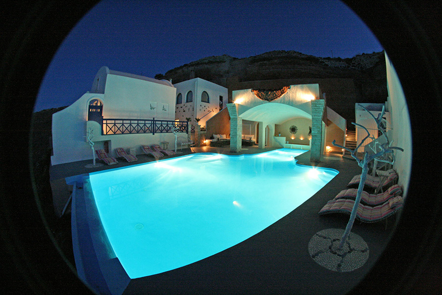 Но самая главная достопримечательность бутика-отеля — бассейн под открытым небом с невидимой кромкой. Его акватория плавно сливается с лазурью Эгейского моря, что позволяет ощутить бескрайность простора. Волшебства добавляет светодиодная система освещения.