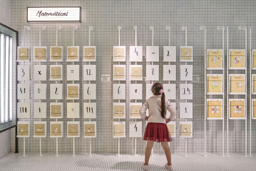 «У меня завязались особые отношения с компанией и ее генеральным директором Enrique Rubio, который увлекается искусством. Еще до начала работы меня привлек имидж марки и ее эстетика, в том числе корпоративные цвета»Ana Milena рассказывает: «Задача состояла в том, чтобы в дизайне магазина объединить прошлое и будущее издательства. И нам это удалось. Мы разработали для Rubio футуристичный стиль с эффектными неоновыми и метакрилатными вывесками, что позволило совершать путешествия во времени. При этом важно было не забывать о сущности компании, что символизируют настенные покрытия, напоминающие чистые белые листы тетради».