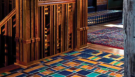 Все плитки, используемых для жилого проекта были сделаны на заказ и являются ручной работой специалистов Motawi Tileworks. «Наш клиент был очень вовлечен в выборе ее любимых цветов глазури для данного проекта, — сказал Кроули. Она приехала на первую встречу со списком восьми цветов глазури, которые хотела бы видеть в своём доме. Изначально, я чувствовал, что было выбрано слишком много цветов, предостерег ее от чрезмерной аляпистости, и предложил остановиться только на пяти. Несмотря на некоторые колебания, мы в итоге пришли к взаимному согласию, и я стал проектировать красочный проект пола в рустикальном стиле, используя предпочитаемую хозяевами дома палитру. Для следующих помещений клиент выбрал конкретные декоративные элементы, которые должны были быть включены в каждый орнамент.»